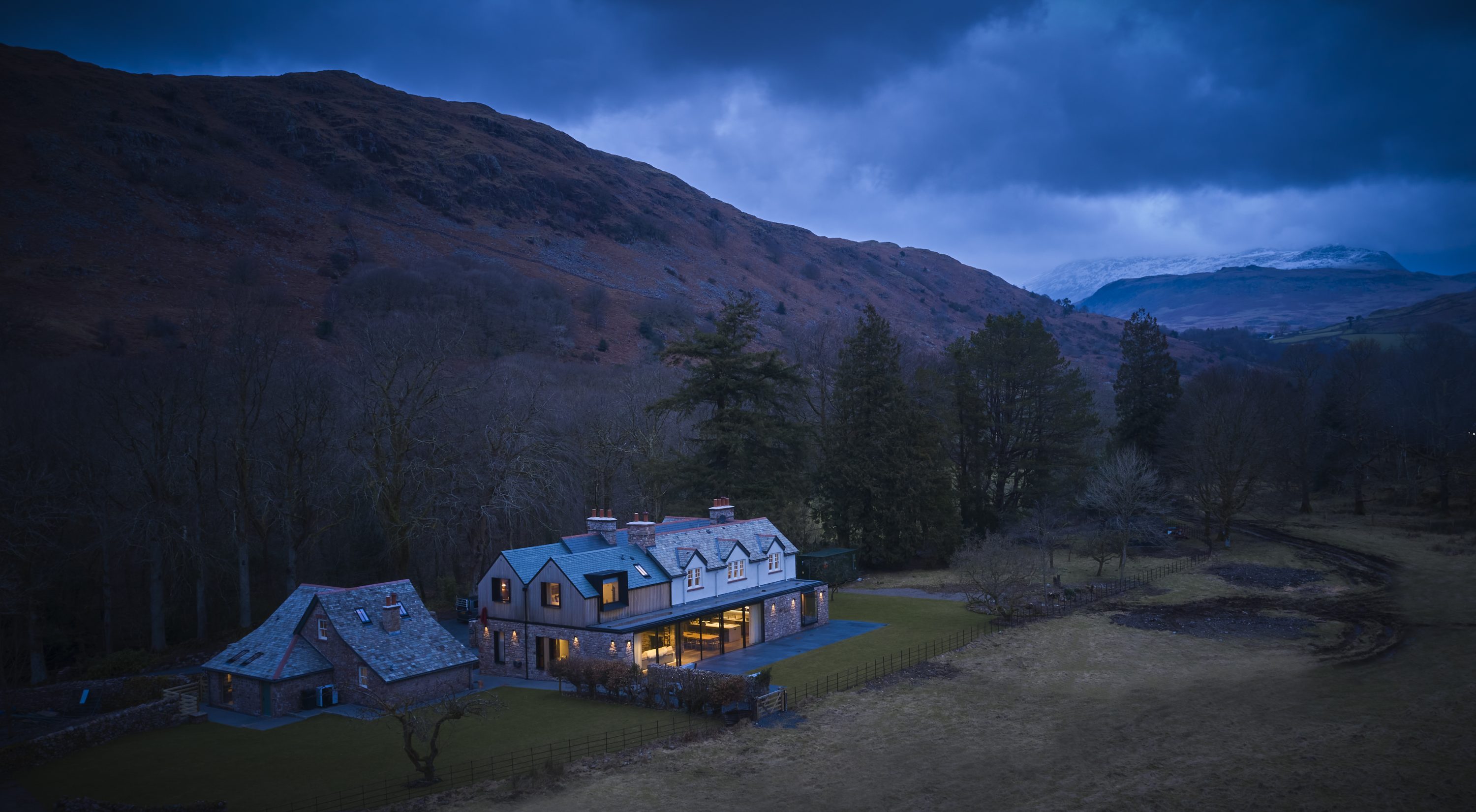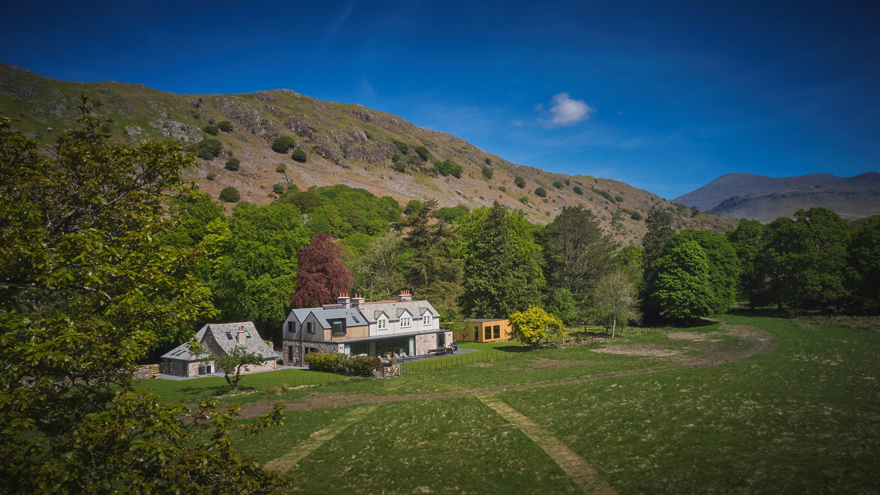 Eskdale Retreat is our fabulous family holiday home in the unspoilt western Lake District. Far from the madding crowd and described by Alfred Wainwright as one of the loveliest of Lakeland’s valleys, this is a special place. Eskdale descends from the highest and wildest mountains in the Lake District towards the sea. This is a heavenly escape for families who love both luxury and the great outdoors. Whether you want to relax and unwind, hike, cycle, wild swim, paddle board or kayak, this magical place ticks all the boxes. The house sits in 10 acres of grounds with two rivers running along its boundary. This is the stuff of childhood dreams. Five ensuite bedrooms in the house and two more in the adjacent Coach House sleep up to 16 people.